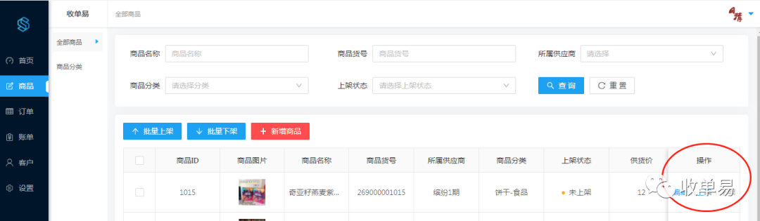 注意:商品选择上架后,该商品会显示在收单易的商城店铺中